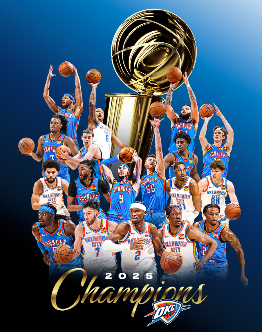 俄克拉荷马雷霆队拿到了队史第一座总冠军奖杯,如果算上雷霆队的前身西雅图超音速队,这也是队史第二座总冠军而已,还是时隔46年的总冠军。