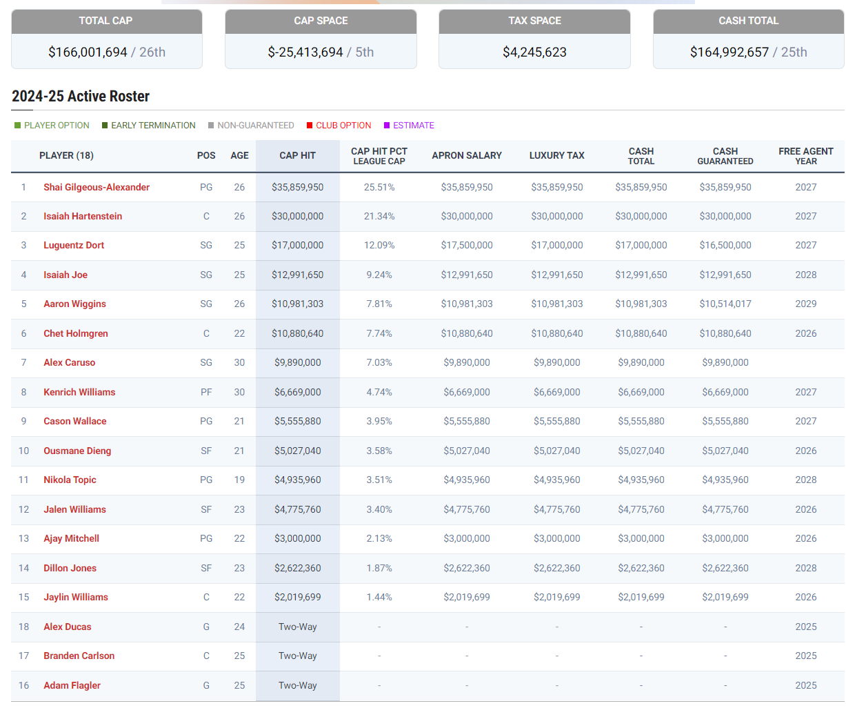 正如我说的这支雷霆夺冠只是一个开始,他们下赛季阵容名单12人合同要到2027年才到期,25-26赛季15人都还身背合同,除此之外未来五年他们有11个首轮签(4个保护+2个互换)与16个次轮签,这支小球市球队会成为很多豪门的噩梦。